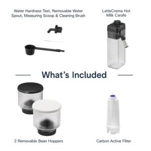 | Included Components | Mini Grinds Bin, 58mm Full Stainless Steel Portafilter, 1 cup & 2 cup, Single Wall Filter Baskets, 480ml Stainless Steel Milk Jug, Steam Wand spare parts, Cleaning Kit, Water Hardness Test Strip, Water Filter Holder and Water Filter |